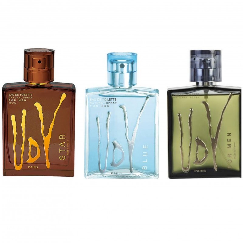 Buy Decant Pack Of UDV Grey, UDV Star, UDV Blue 10ml x3 UdV by Ulric de Varens is a Citrus fragrance for men. UdV was launched in 1993. Top notes are lemon, tangerine, mint, artemisia and sage; middle notes are galbanum, rosemary and vetiver; base notes are jasmine, patchouli, oakmoss and musk. UDV Star by Ulric de Varens is a Citrus Aromatic fragrance for men. Top notes are bergamot and mandarin orange; middle notes are lavender and sage; base notes are leather and patchouli. UDV Blue by Ulric de Varens is a Aromatic Aquatic fragrance for men. The fragrance features lavender, musk, woody notes and amber.