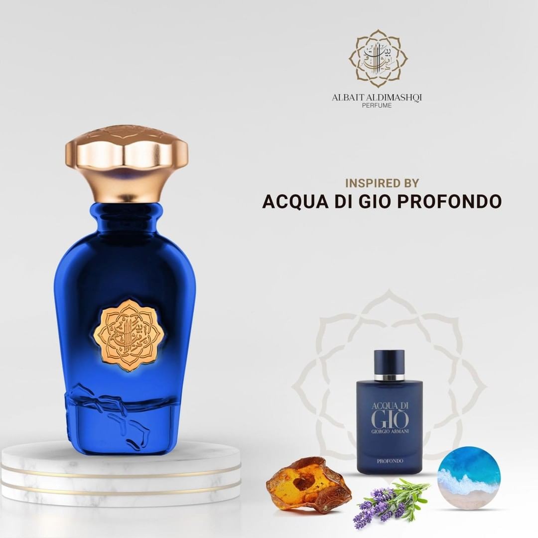 Buy Albait Al dimashqi Acqua Di Gio Profondo online in India at best price From Aar Fragrances.Tackle the depths of pleasure with Albait Aldimashqi's Aromatic Sea Acqua Di Gio Profondo Eau De Parfum 75ml for Men! Explore its daring notes of bergamot and grapefruit, and take the plunge to discover its aquatic and jasmine-infused depths! Be ready to explore your wildest senses.