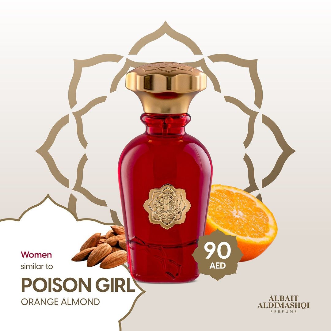 Buy Albait Al dimashqi Dior Poison Girl online in India at best price From Aar Fragrances. Experience the captivating scent of Albait Aldimashq Floral Almond Eau De Parfum, designed for women. Its 75ml bottle is filled with top-notes of orange blossom and natural almond. Offering a beautiful, long-lasting scent that’s sure to be noticed.